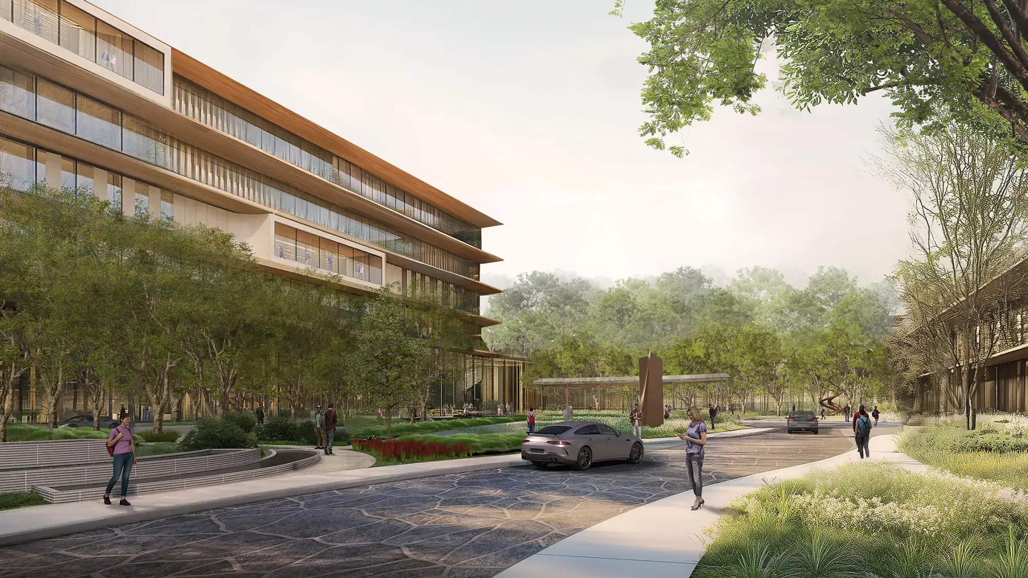 • Family-friendly amenities—playgrounds, amphitheater, food trucks, and casual dining nodes.
